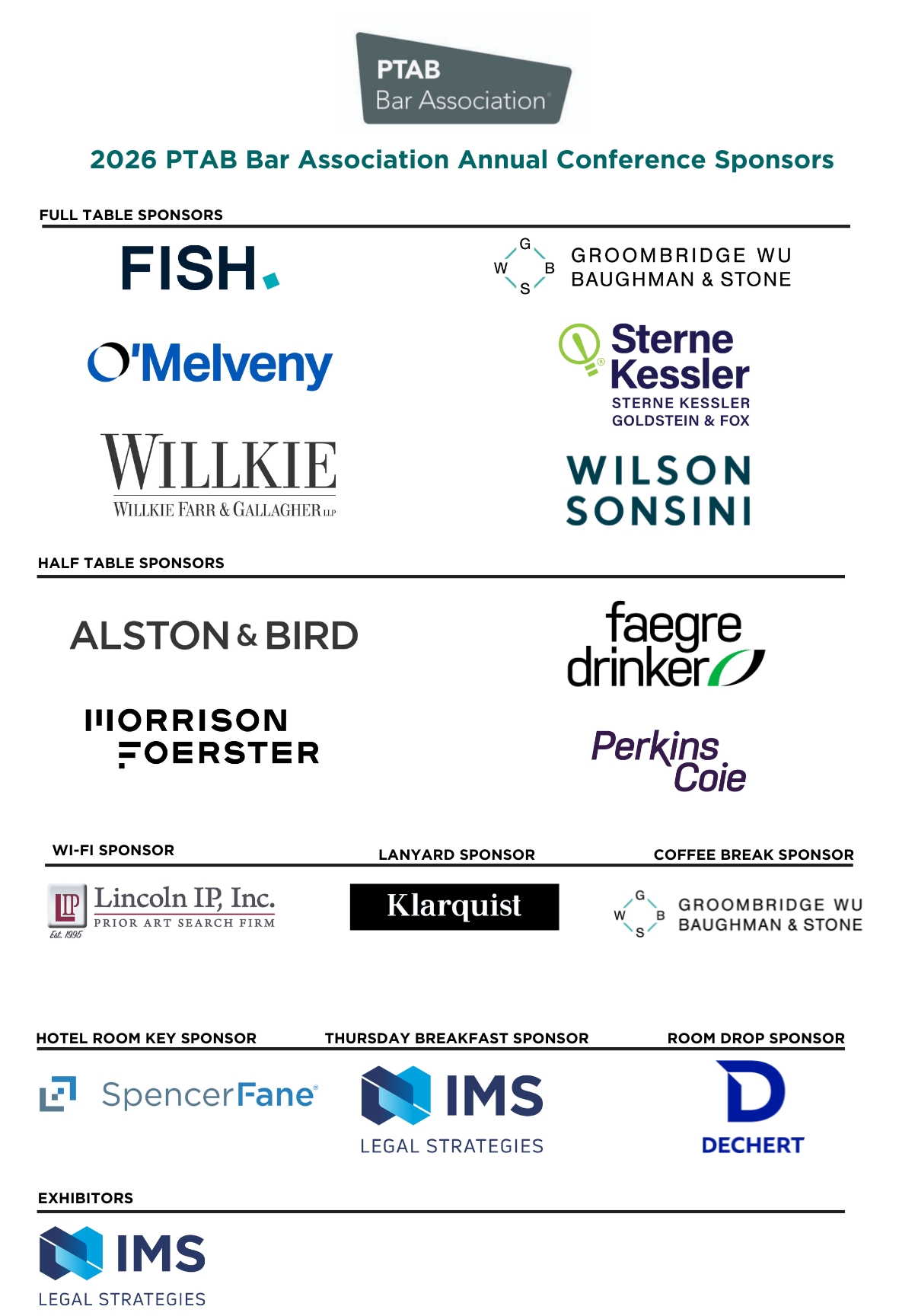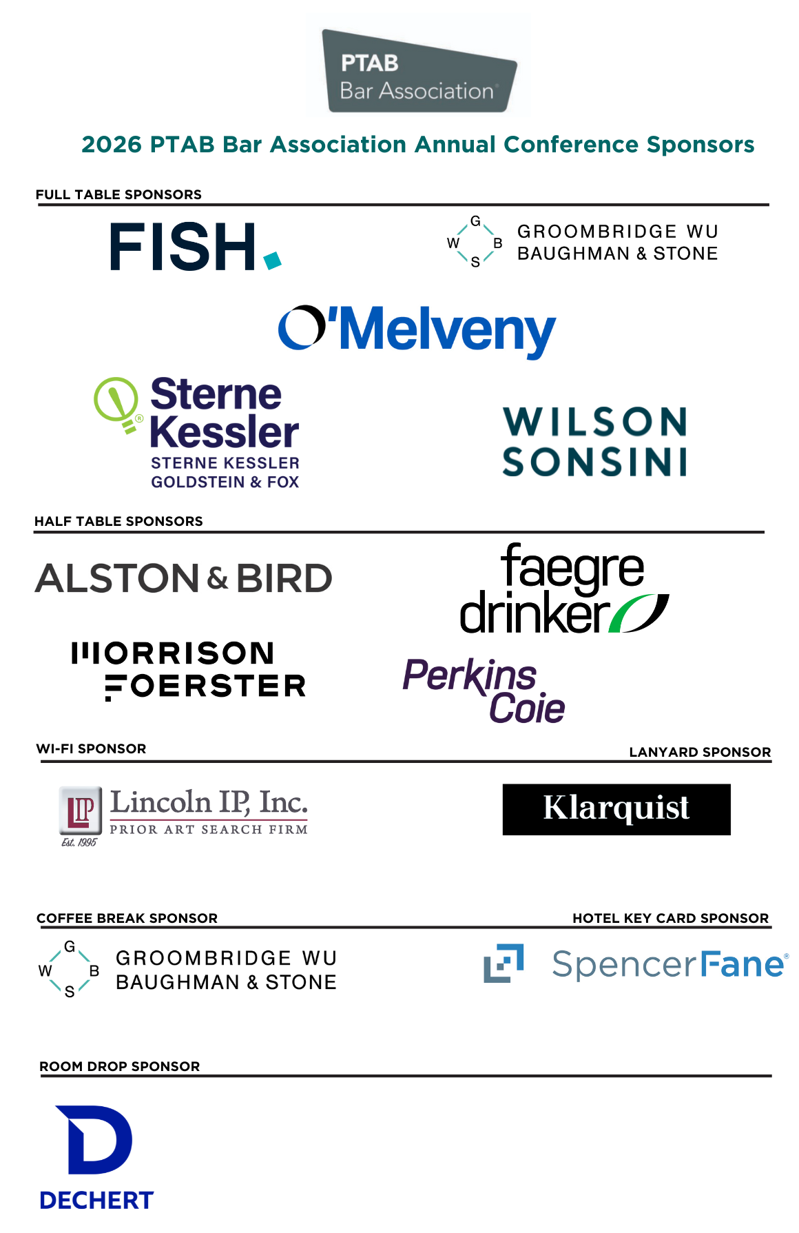 The 2026 PTAB Bar Association Sponsor Policy and Commitment Form is available here.