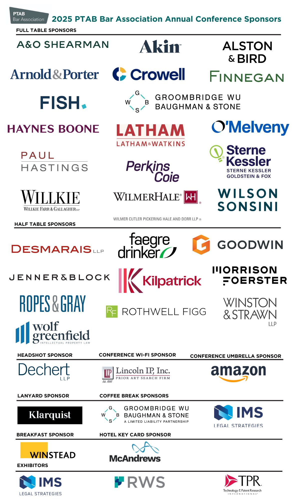 The 2025 PTAB Bar Association Sponsor Policy and Commitment Form is available here.