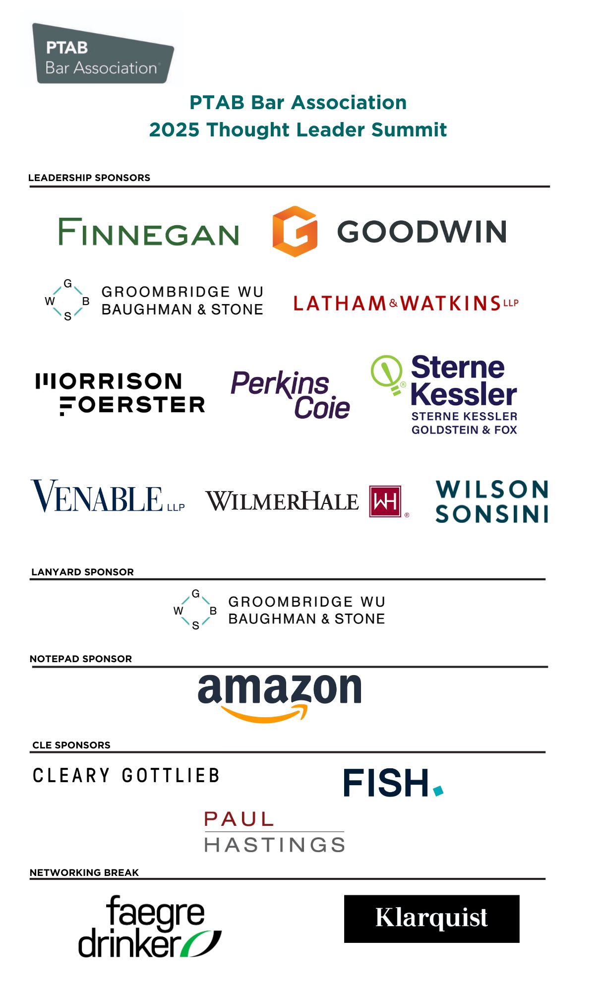 The 2025 PTAB Bar Association Thought Leader Summit Sponsor Policy and Commitment Form is available here.
