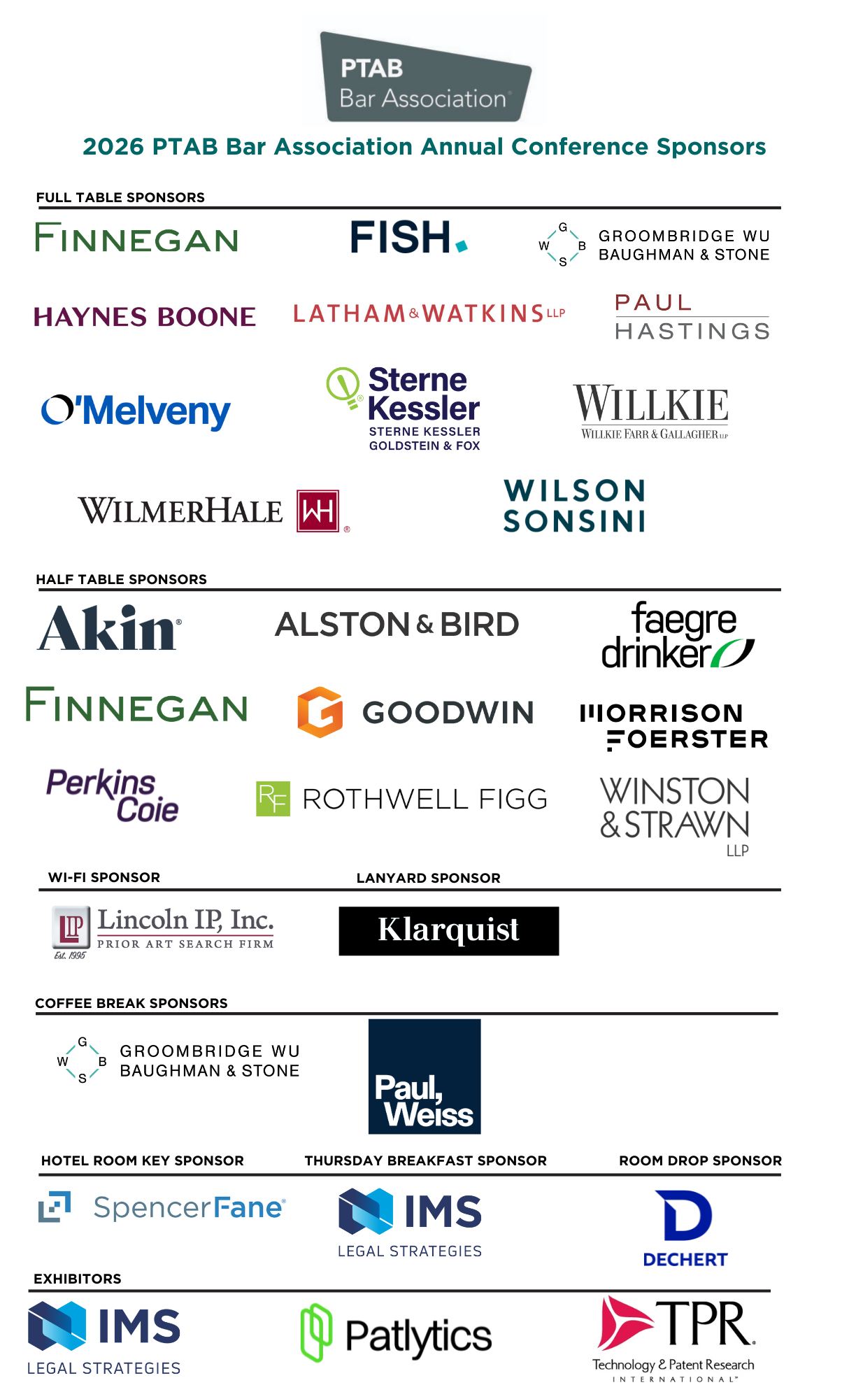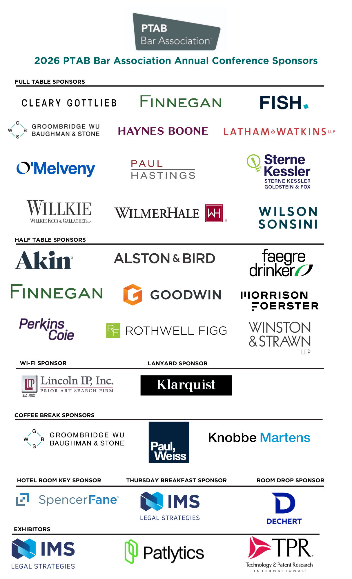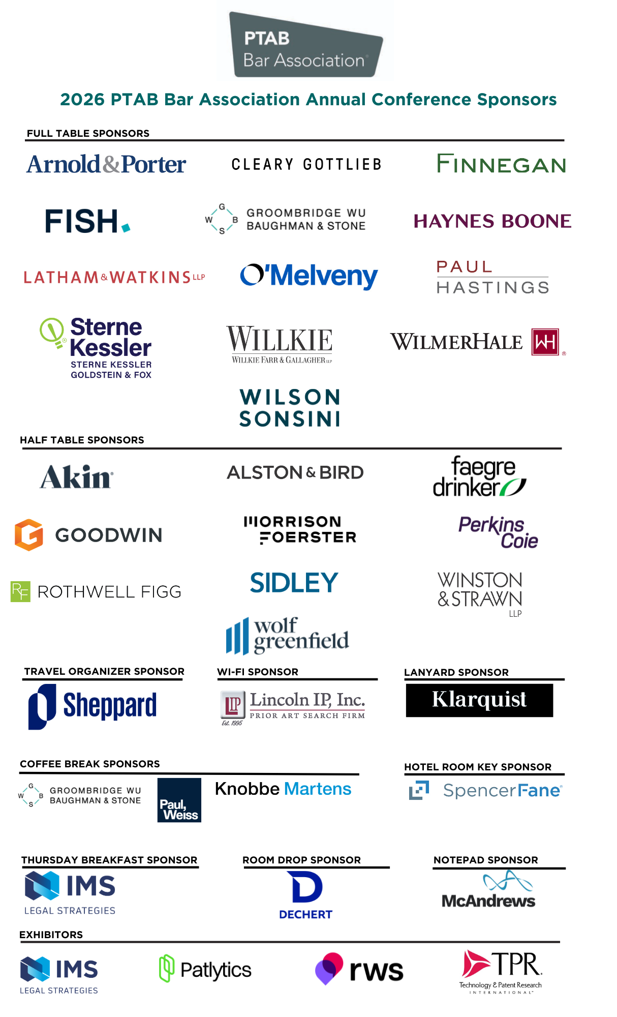 Please visit 2026 Annual Conference Sponsorship and contact LaTrese Wallace at latrese.wallace-ptab@mci-group.com to partner with the PTAB Bar Association as a valuable sponsor for this event.